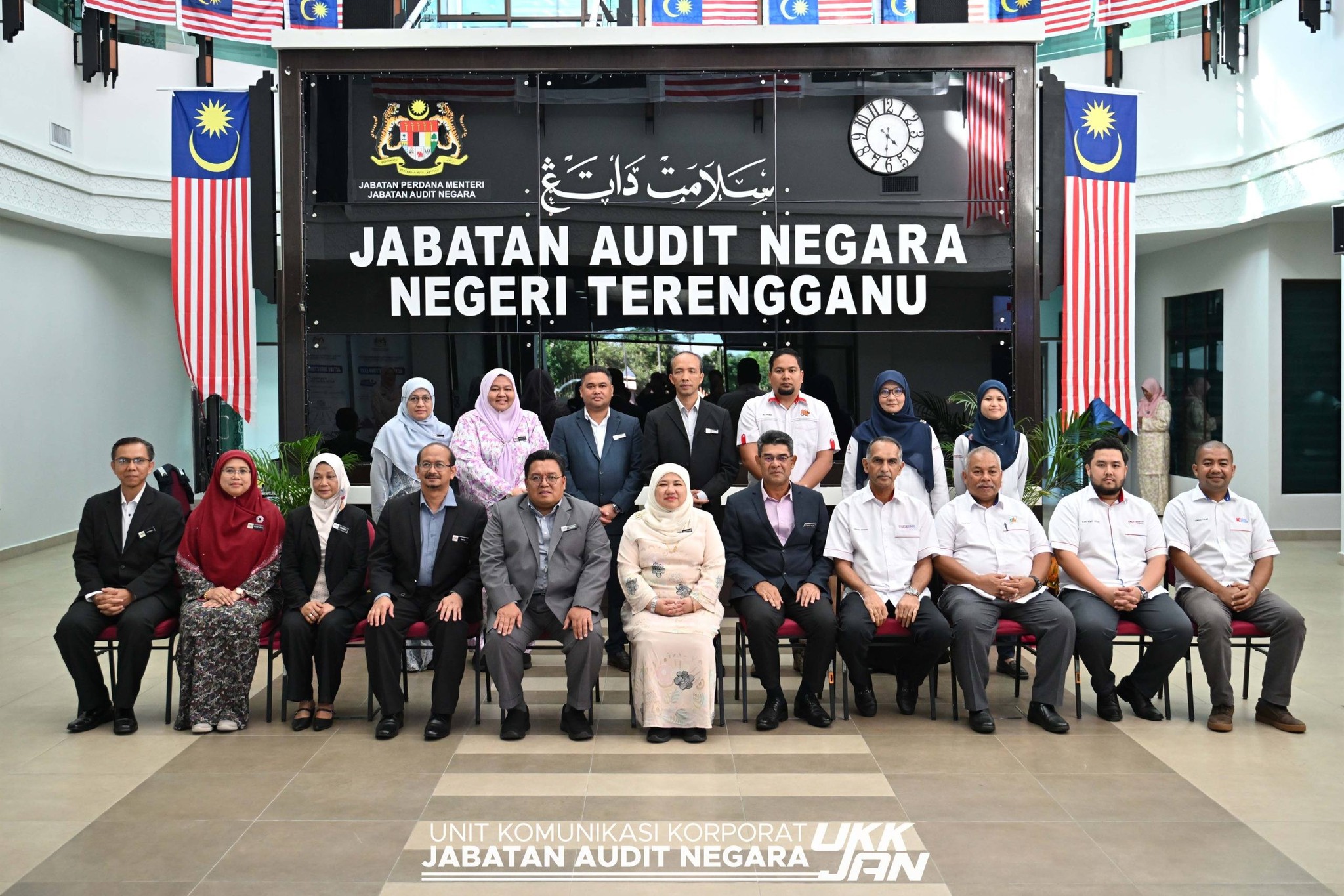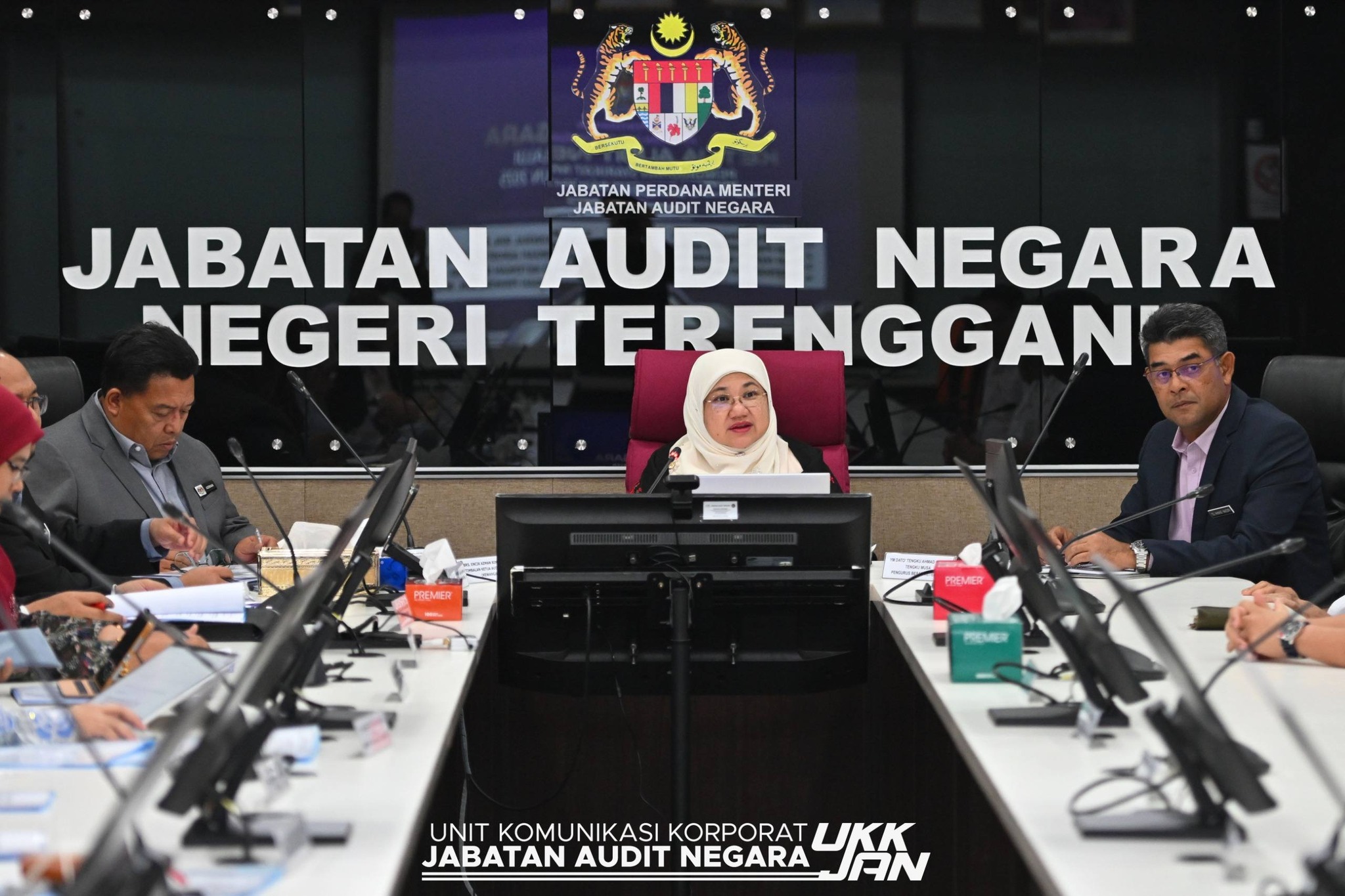Turut hadir dalam sesi ini adalah Encik Azman bin Mahmood, Timbalan Ketua Audit Negara (Kewangan); Puan Sharifah Zarina binti Syed Ahmad, Pengarah Audit Sektor Audit Pengurusan Syarikat Kerajaan dan Encik Mohd Faidzal bin Abu, Pengarah Audit Negeri Terengganu.