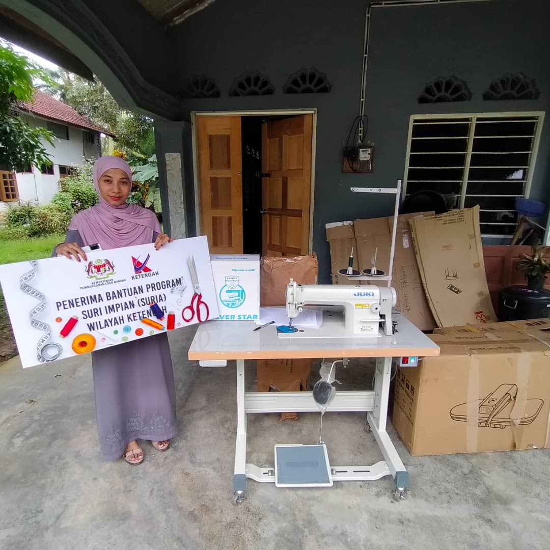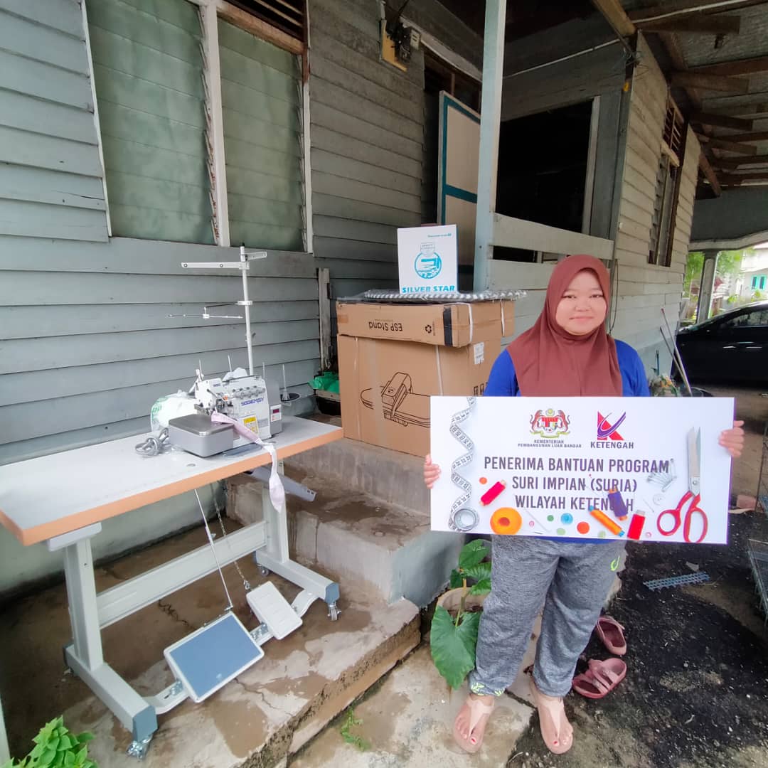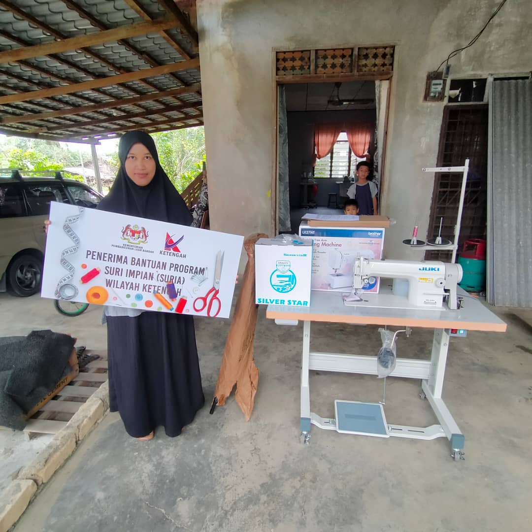 “Seramai 20 suri dari Wilayah KETENGAH mendapat bantuan pembiayaan peralatan jahitan di bawah Program Suri Impian (SURIA) berjumlah RM100,000 bagi menambah pendapatan keluarga sekali gus keluar daripada belenggu kemiskinan.”