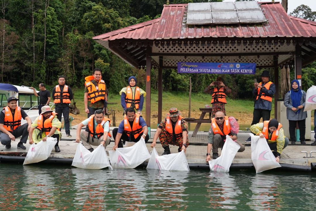 Hadir sama Pengurus Zon Bebas, Encik Faizol bin Abdul Aziz yang mewakili Pengurus Besar KETENGAH, YM Dato’ Tengku Ahmad Nadzri bin Tengku Musa. YB Ustaz Sulaiman juga telah melapaskan benih ikan lampan bertempat di Sungai Leban, Tasik Kenyir