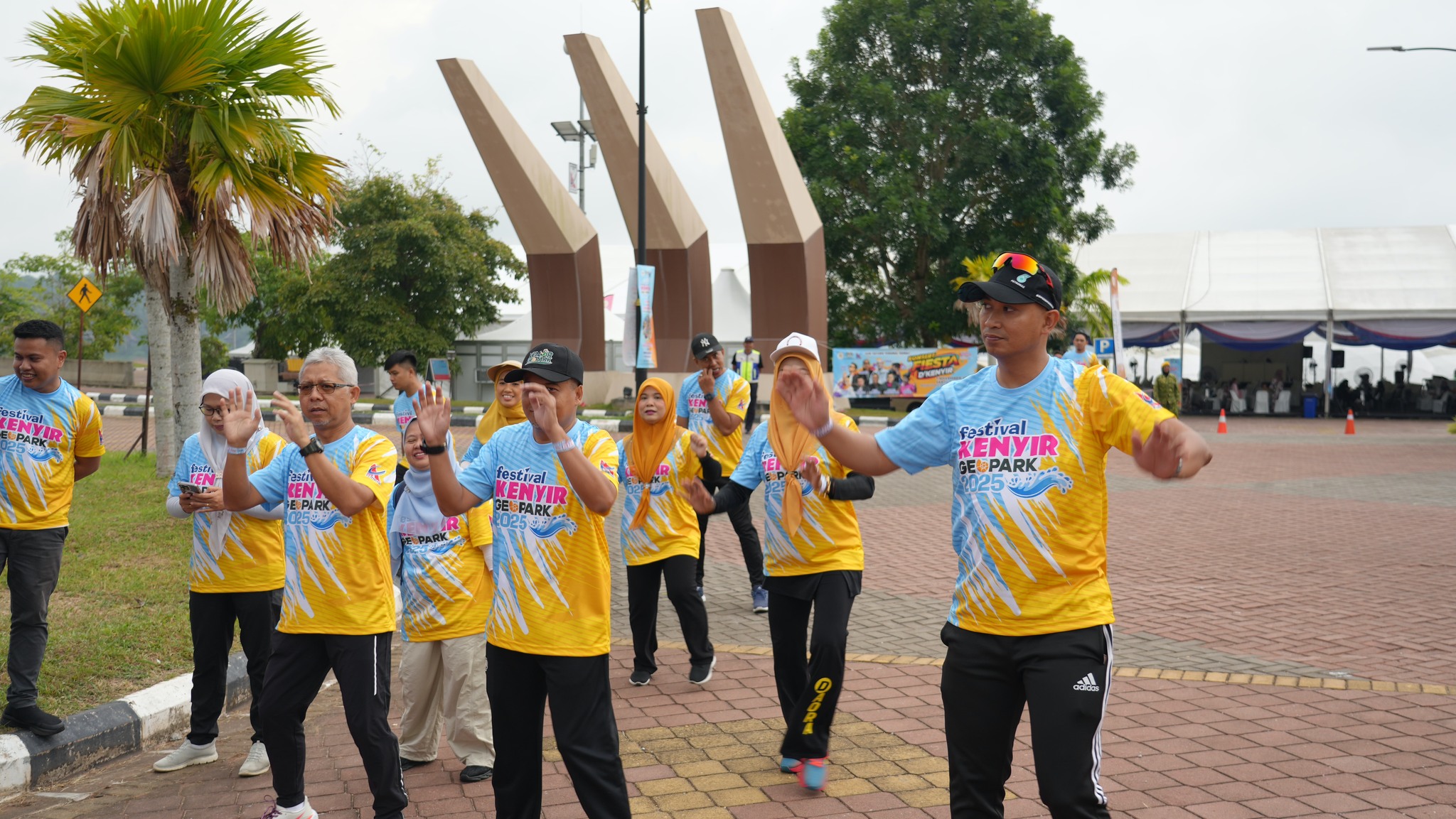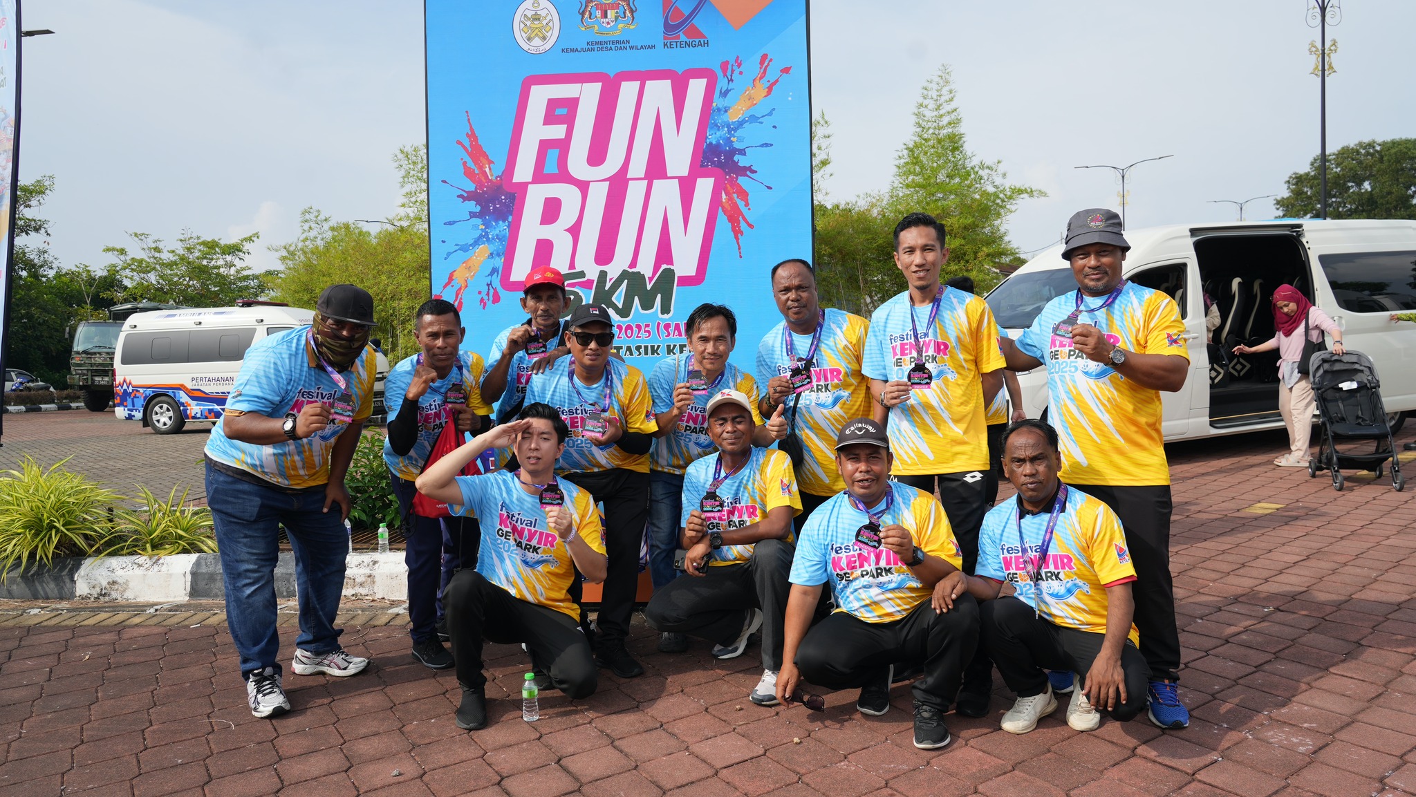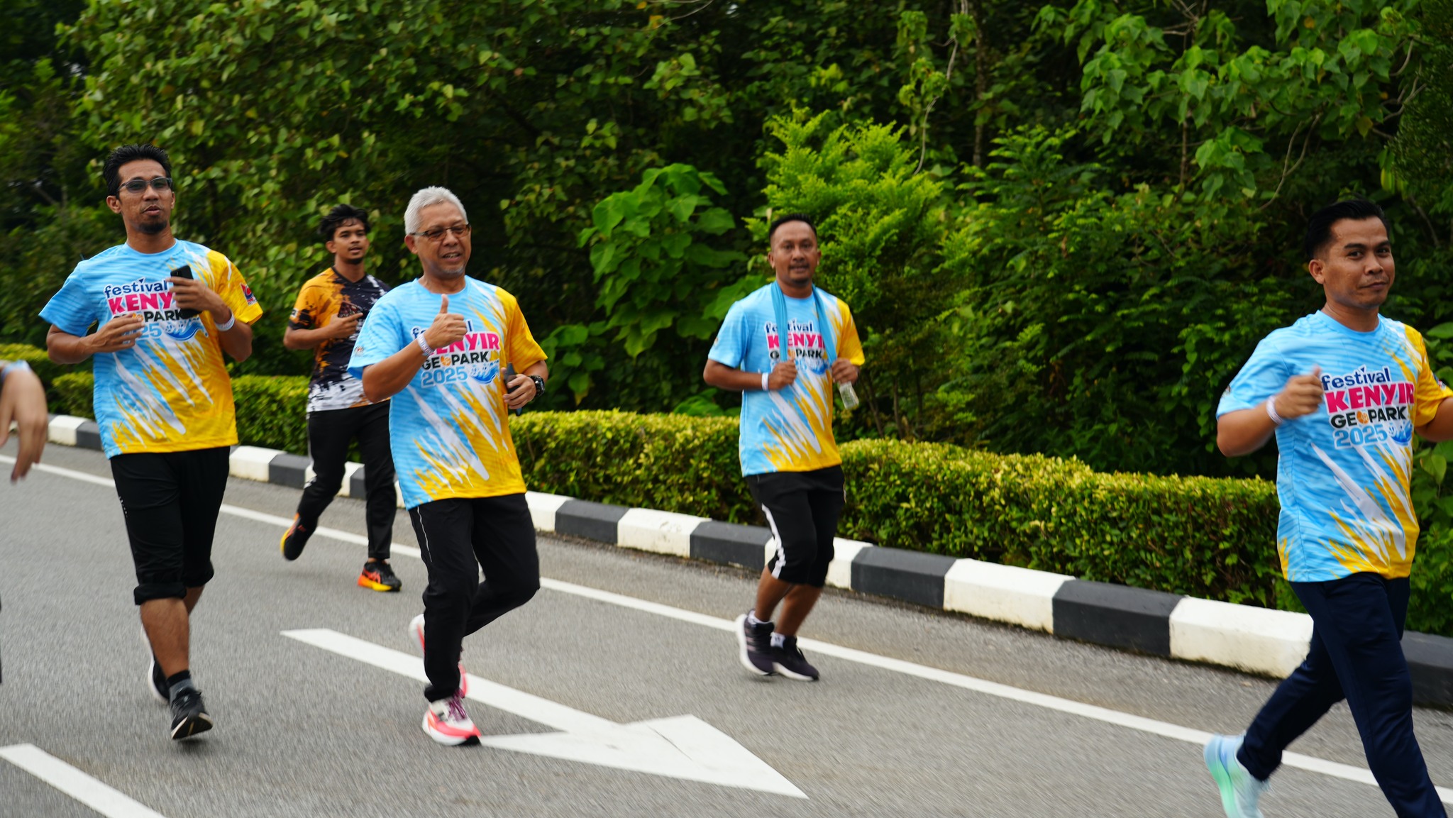 Acara Fun Run sempena Festival Kenyir Geopark 2025 berlangsung meriah di Pulau Poh, Tasik Kenyir, dengan penyertaan peserta dari pelbagai lapisan umur.
