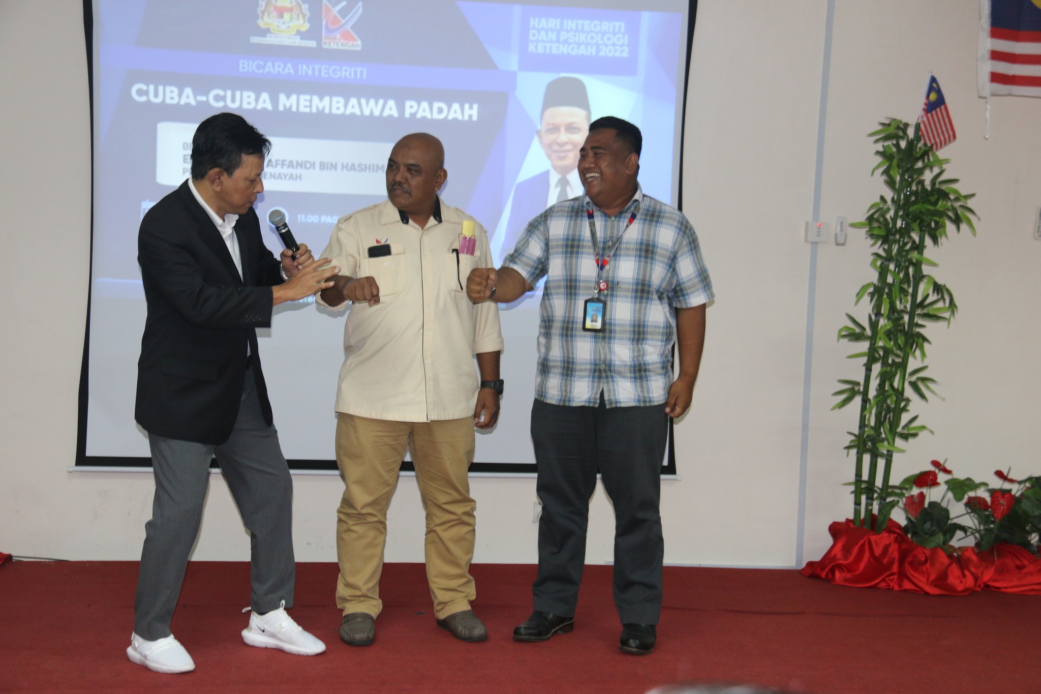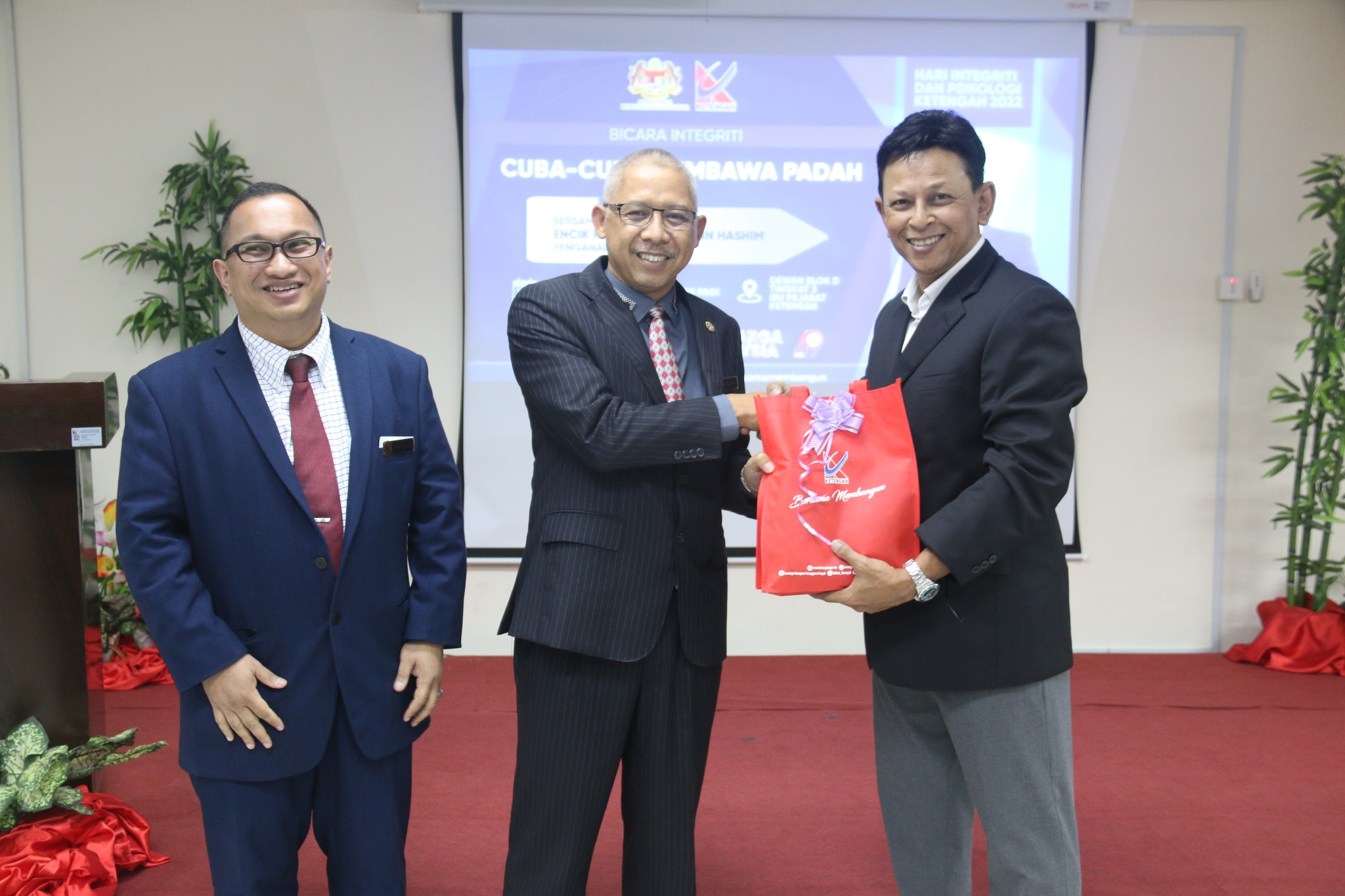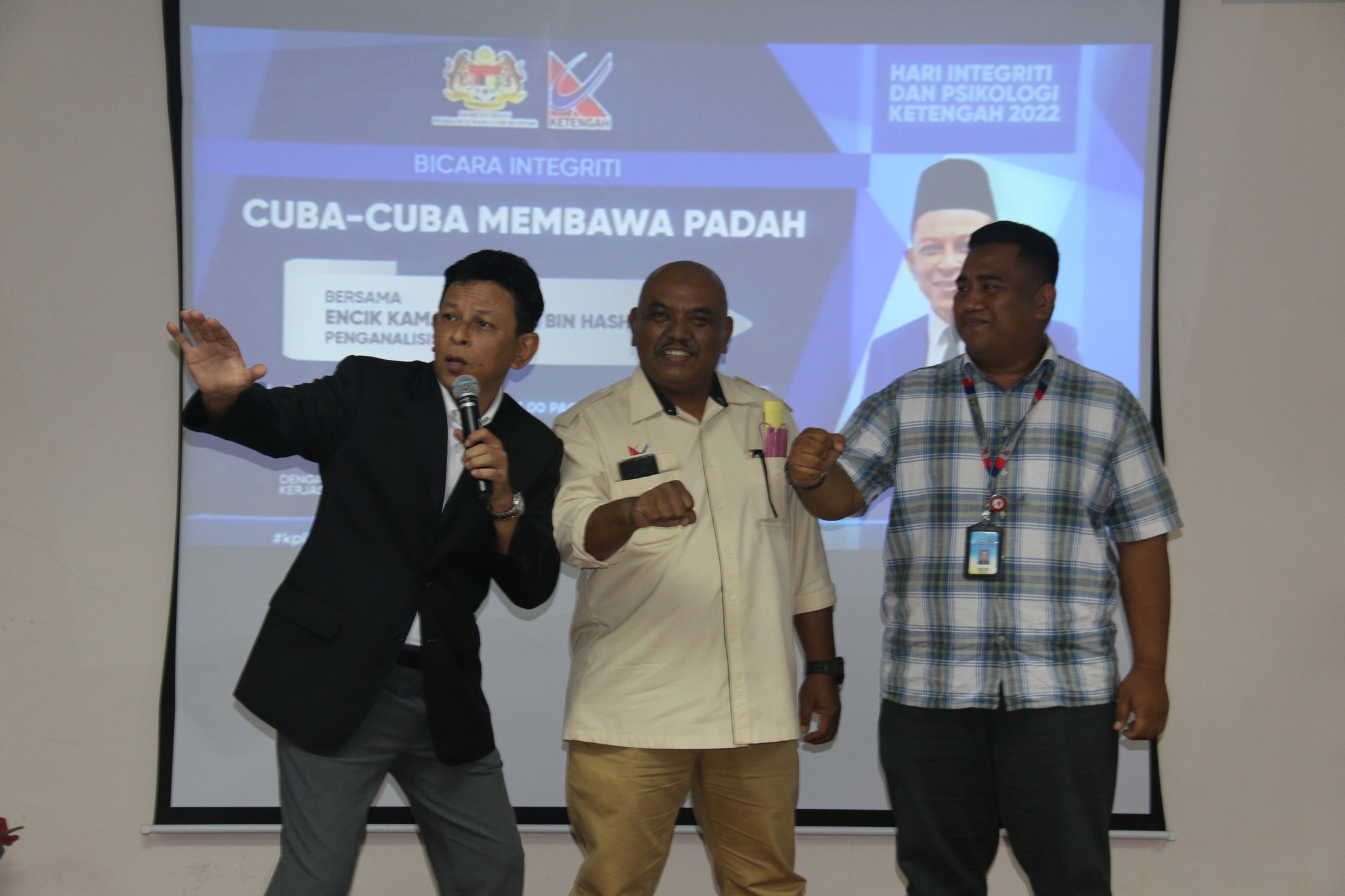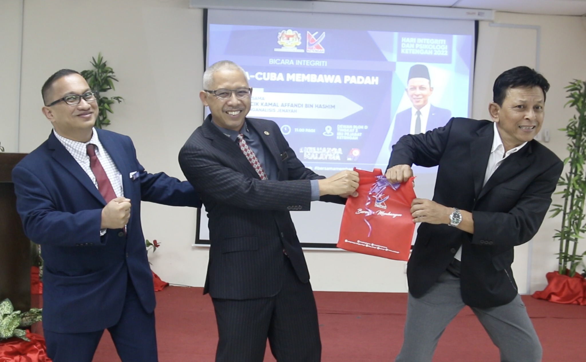 Pengurus Besar KETENGAH berkata ” Integriti merupakan aspek yang sangat penting dalam kita menjalani kehidupan seharian. Isu integriti bukan hanya memfokuskan kepada isu-isu rasuah sahaja, malah merupakan satu konsep yang lebih besar”. Beliau menambah “Saya juga menyeru kepada warga KETENGAH untuk melaksanakan tugas dan amanah yang dipertanggungjawabkan dengan penuh berintegriti demi agama, negara dan bangsa tercinta”.