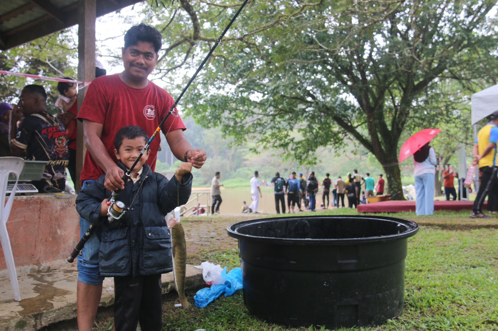 Keadaan cuaca yang redup sangat mengujakan dengan pemancing begitu tekun dan sabar menanti tangkapan masing-masing. Pelbagai jenis umpan yang digunakan oleh kaki pancing serta mempunyai ‘resepi’ tersendiri dalam memikat ikan untuk meragut mata kail. Sehingga berakhir acara pada jam11.30 pagi, sejumlah 111 ekor ikan berjaya dinaikkan oleh para peserta.