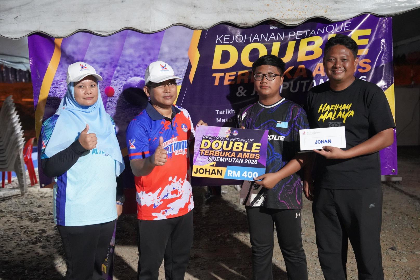 Tahniah dan syabas diucapkan kepada semua pasukan yang telah menyertai Kejohanan Petanque Open Double Tertutup Wilayah KETENGAH & Jemputan yang berlangsung dengan penuh semangat kesukanan dan persaingan sihat.