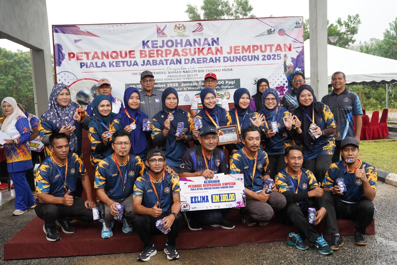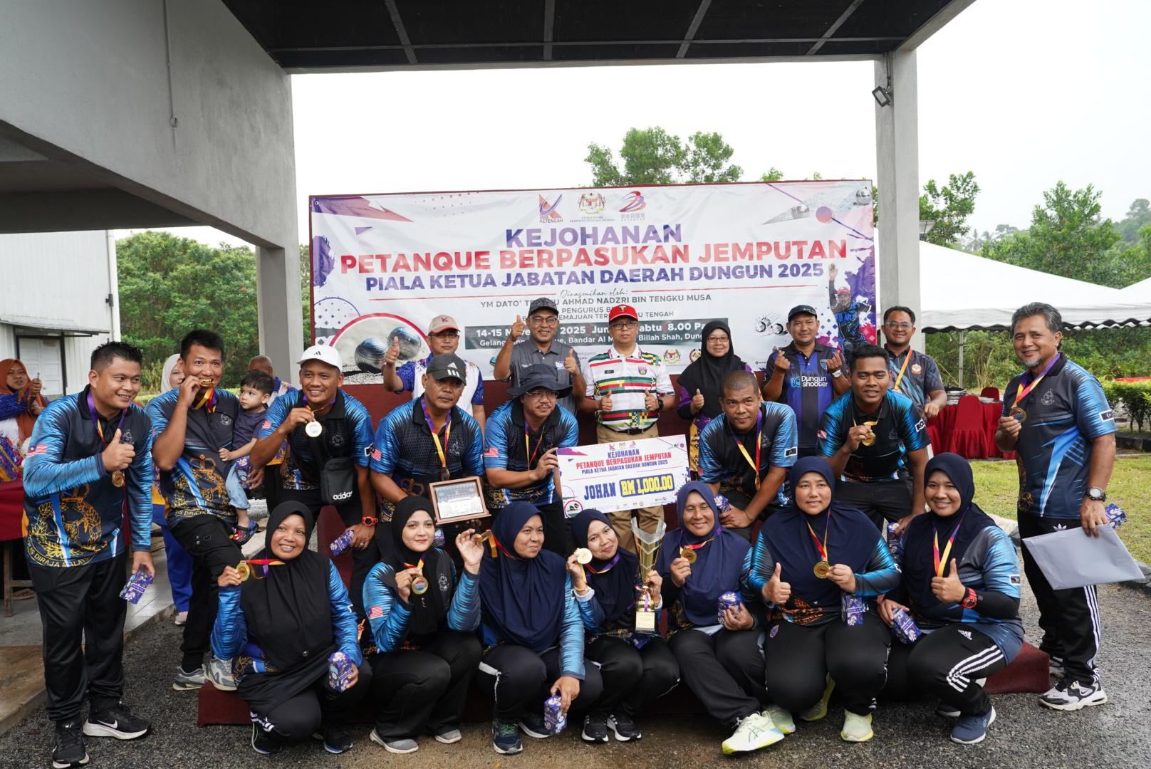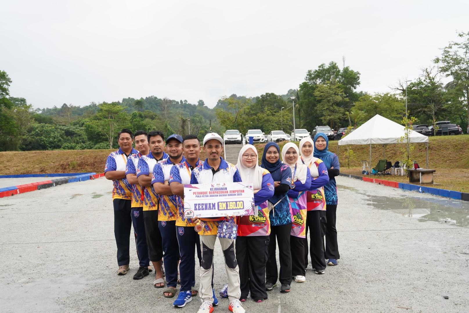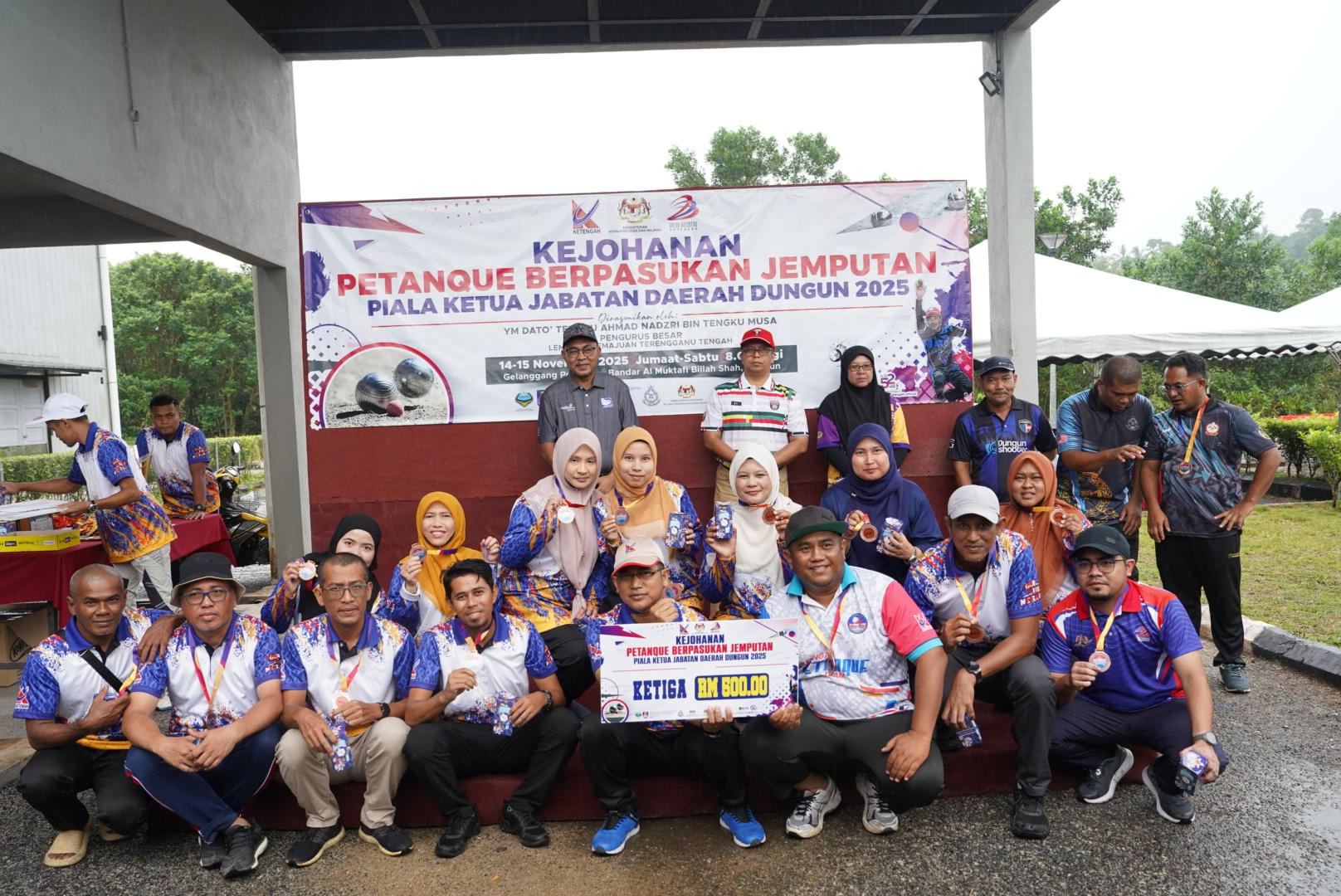 KETENGAH telah menjadi tuan rumah Kejohanan Petanque Berpasukan Jemputan Piala Ketua Jabatan Daerah Dungun bagi edisi 2025. Kejohanan ini menghimpunkan lapan pasukan daripada tujuh jabatan sekitar Daerah Dungun bagi merebut hadiah wang tunai berjumlah RM1,000.00 beserta piala pusingan.
