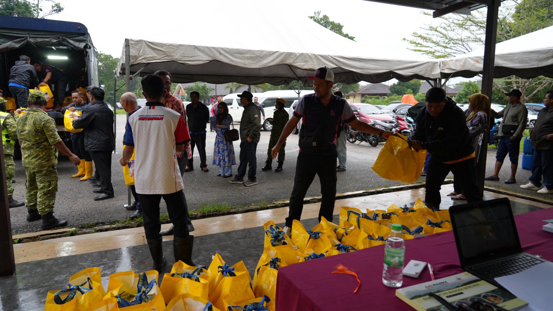 Sebagai tanda keprihatinan KETENGAH terhadap kebajikan masyarakat setempat, YBrs. Dr. Mohd Zaki bin Haji Salleh, yang mewakili Pengerusi KETENGAH, YBhg. Dato’ Rozi bin Mamat, telah menyampaikan sumbangan berupa 84 kit bantuan bencana kepada mangsa-mangsa banjir yang terjejas. Hadir sama Puan Zulita binti Mohamed, Pengurus Bahagian Perancangan Strategik KETENGAH.