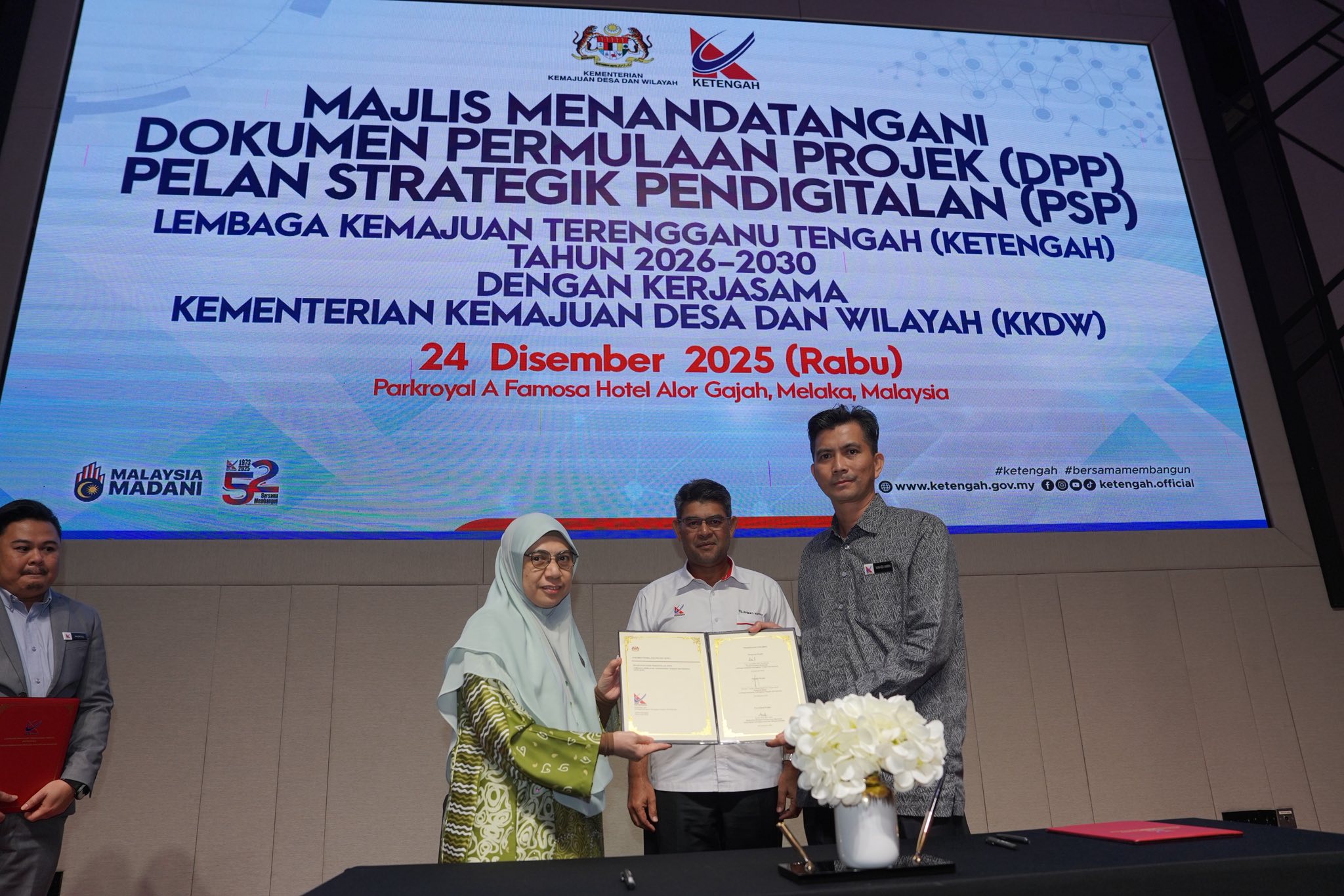 KETENGAH telah melaksanakan Bengkel Bajet Rolling Plan Pertama (RP1) Tahun 2026 dan Rolling Plan Kedua (RP2) Tahun 2027 di bawah Rancangan Malaysia Ketiga Belas (RMK-13) Lembaga Kemajuan Terengganu Tengah (KETENGAH) pada 20 hingga 24 Disember 2025 bertempat di PARKROYAL A’FAMOSA RESORT Melaka.