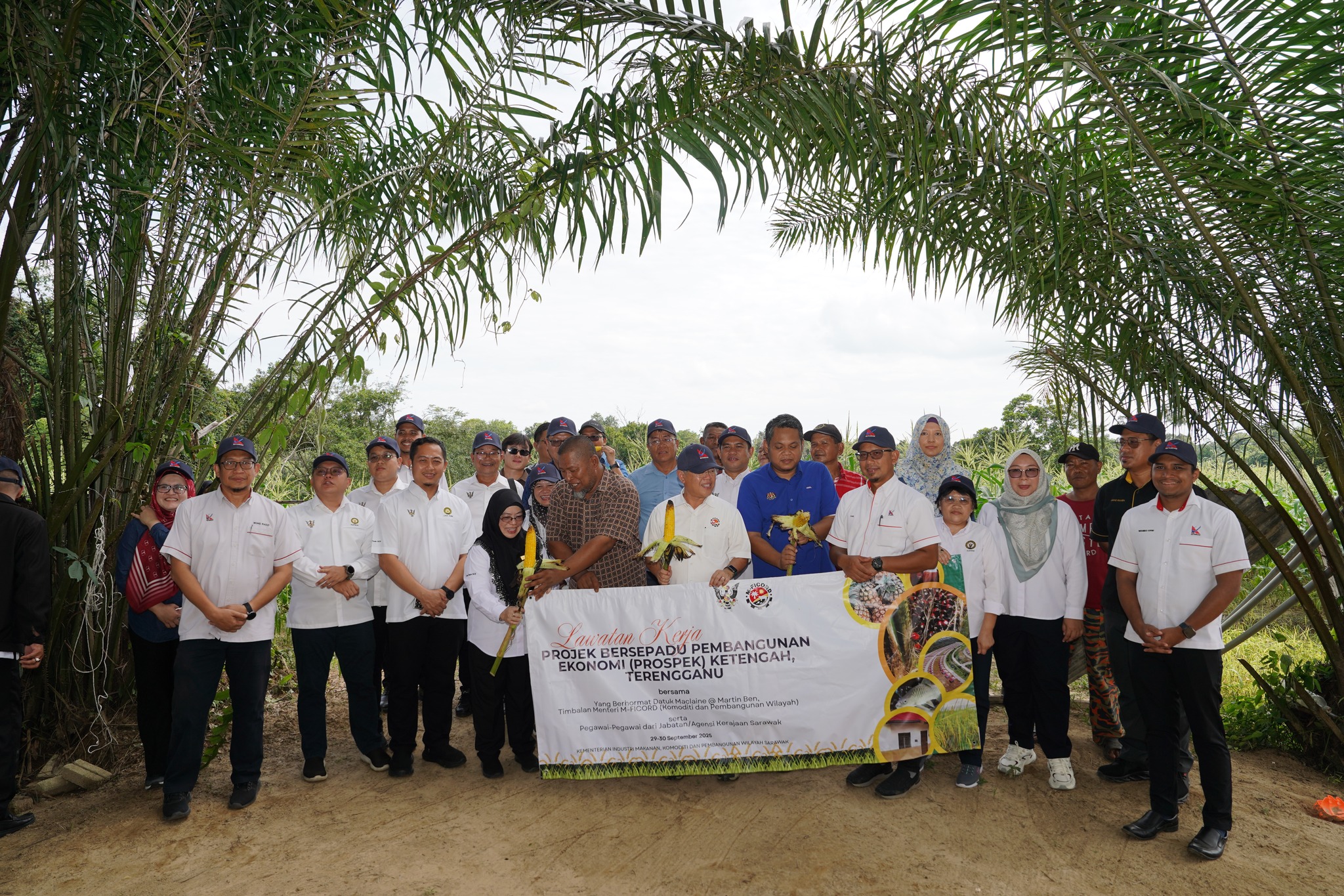 KETENGAH telah menerima kunjungan daripada Kementerian Industri Makanan, Komoditi dan Pembangunan Wilayah Sarawak (M-FICORD) yang diketuai oleh Yang Berhormat Datuk Maclaine @ Martin Ben, Timbalan Menteri M-FICORD (Komoditi dan Pembangunan Wilayah) bersempena lawatan kerja ke Projek Bersepadu Pembangunan Ekonomi Kampung (PROSPEK) di bawah Lembaga Kemajuan Terengganu Tengah (KETENGAH) serta projek-projek pertanian di bawah Jabatan Pertanian Negeri Terengganu.