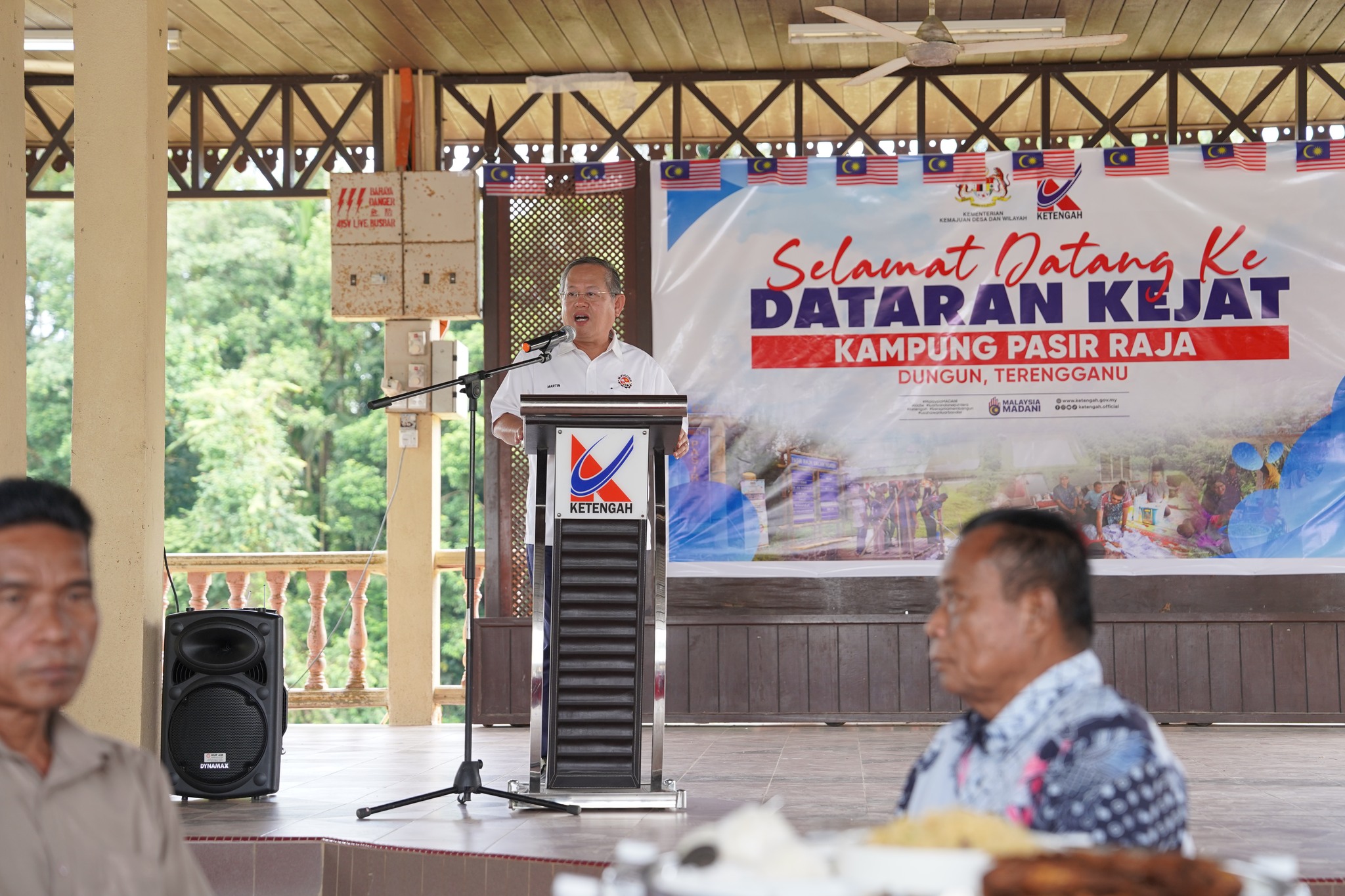 Rombongan telah disambut oleh Yang Berusaha En. Zainuddin bin Hj. Md. Zaki, Timbalan Pengurus Besar (Pembangunan) KETENGAH, Encik Amal Fariz bin Awang, Penolong Setiausaha Bahagian Kemajuan Tanah dan Wilayah KKDW, Pengurusan KETENGAH, kepimpinan dan penduduk setempat bertempat di Dataran Kejat Kampung Pasir Raja.