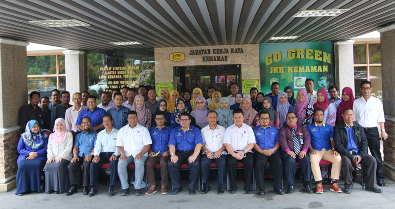 Deligasi KETENGAH telah disambut mesra oleh Ahli Jawatankuasa EKSA JKR Kemaman dan taklimat berkaitan pelaksanaan EKSA disampaikan oleh Encik Mohd Al Azhar bin Ali, Jurutera Bangunan JKR Kemaman. Seterusnya, deligasi KETENGAH dibawa melawat di Depo JKR Kemaman dan melihat sendiri keberkesanan pelaksanaan EKSA di Depo.