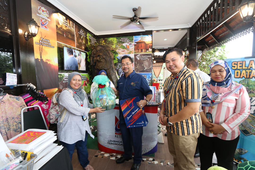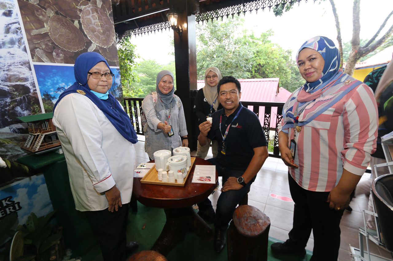 Timbalan Ketua Setiausaha (Dasar) KPLB, YBhg. Datuk Che Murad Sayang bin Ramjan turut berkesempatan meluangkan masa melawati booth KETENGAH di Pavilion Negeri. Beliau turut merasai minuman herba yang disediakan.