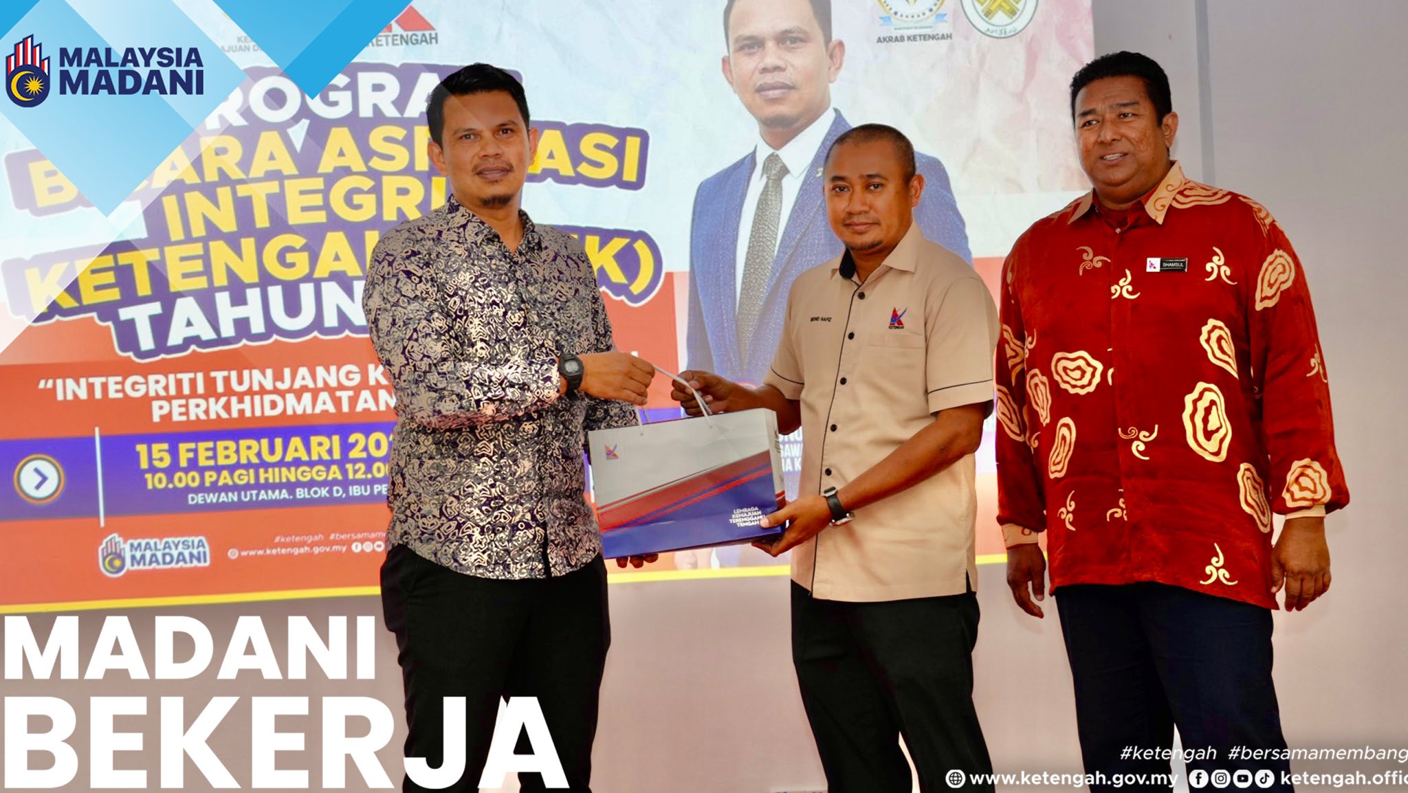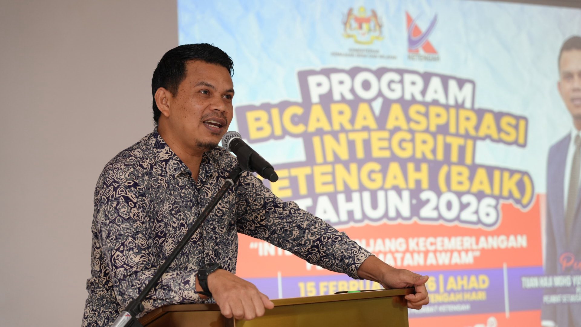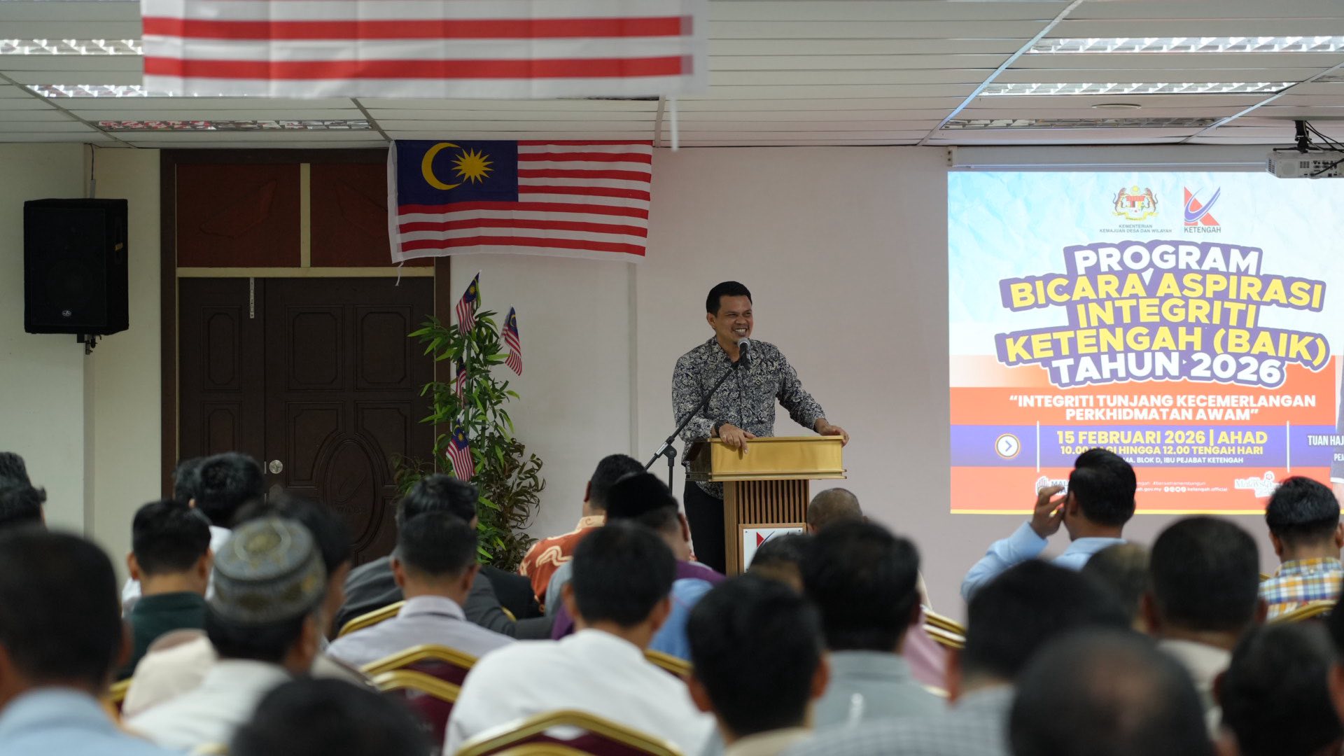 Dungun, 15 Februari 2026 – Program Bicara Aspirasi Integriti KETENGAH (BAIK) Siri 1 Tahun 2026 telah diadakan pada Ahad, dari jam 10.30 pagi hingga 12.30 tengah hari bertempat di Dewan Tingkat 3, Blok D, Ibu Pejabat KETENGAH, Bandar Al Muktafi Billah Shah.