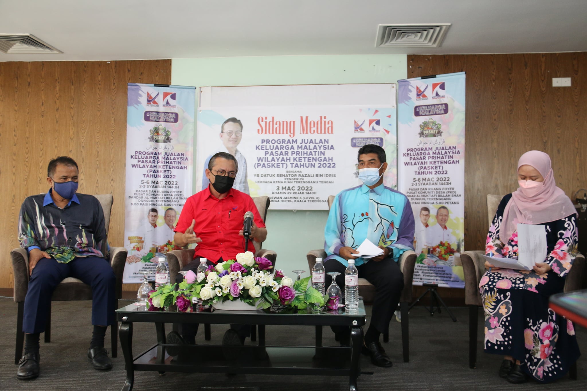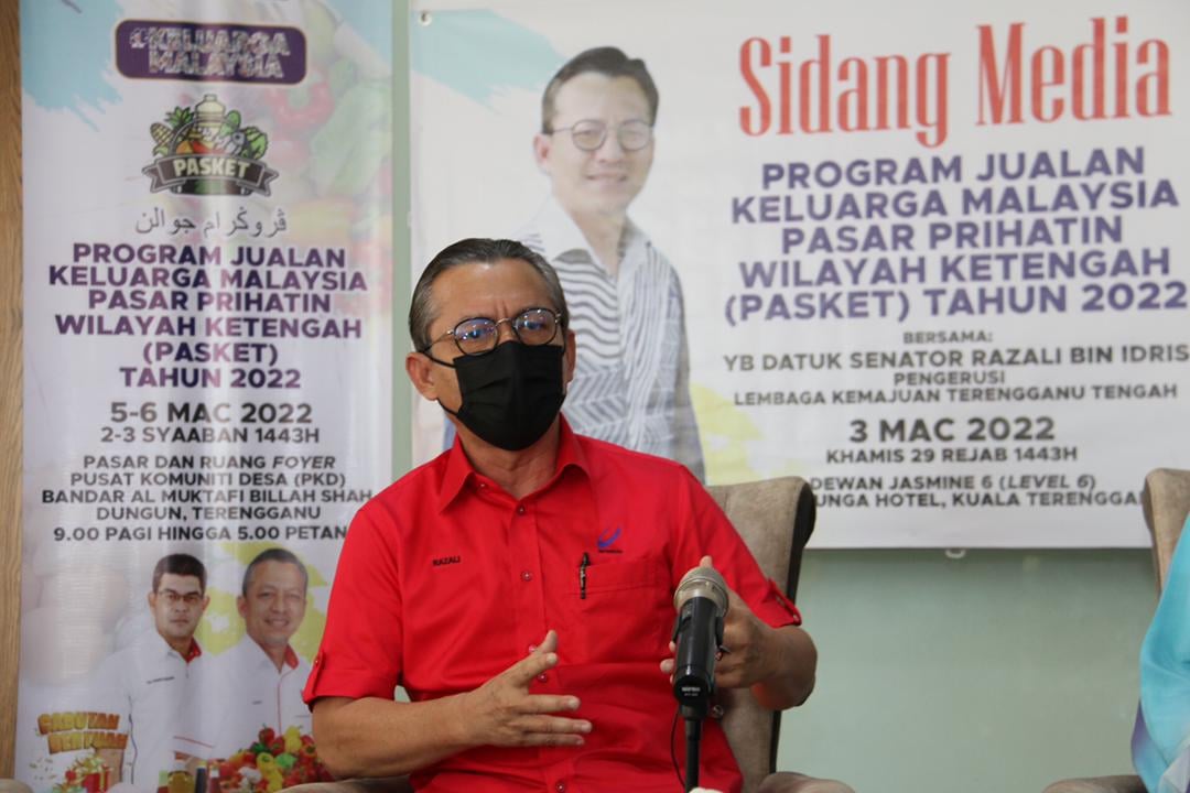Sebentar tadi telah berlangsung Sidang Media Program Jualan Keluarga Malaysia Pasar Prihatin (PASKET) Wilayah KETENGAH Tahun 2022 oleh YB Senator Datuk Razali bin Idris, Pengerusi KETENGAH. Hadir sama pada sidang media berkenaan YM Tengku Ahmad Nadzri bin Tengku Musa, Pengurus Besar KETENGAH, Tuan Haji Ahmad Fakaruddin bin Ahmad, Timbalan Pengurus Besar (Operasi) dan Puan Fadhlina binti Mohamed, Pengurus Ekonomi dan Usahawan.