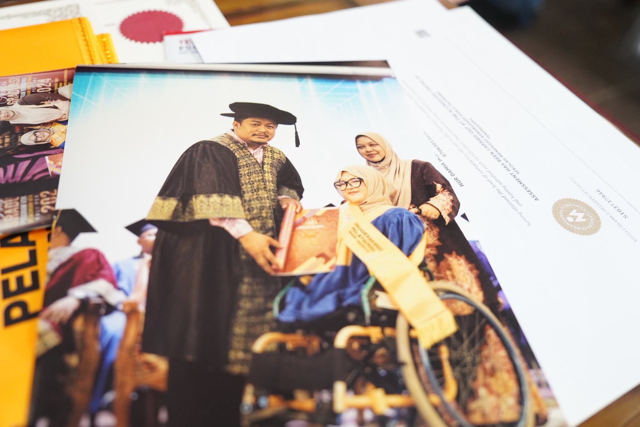 Penerima sumbangan, Adik Nur Damia Irsalina binti Daeng Malis, merupakan seorang pelajar OKU yang telah berjaya melanjutkan pengajian di Pusat Latihan Industri Perkayuan Terengganu dalam Kursus Pelukis Kanan Rekaan Dalaman. Kejayaan ini membuktikan keupayaan beliau untuk bersaing dan menonjol walaupun berdepan cabaran fizikal yang besar.