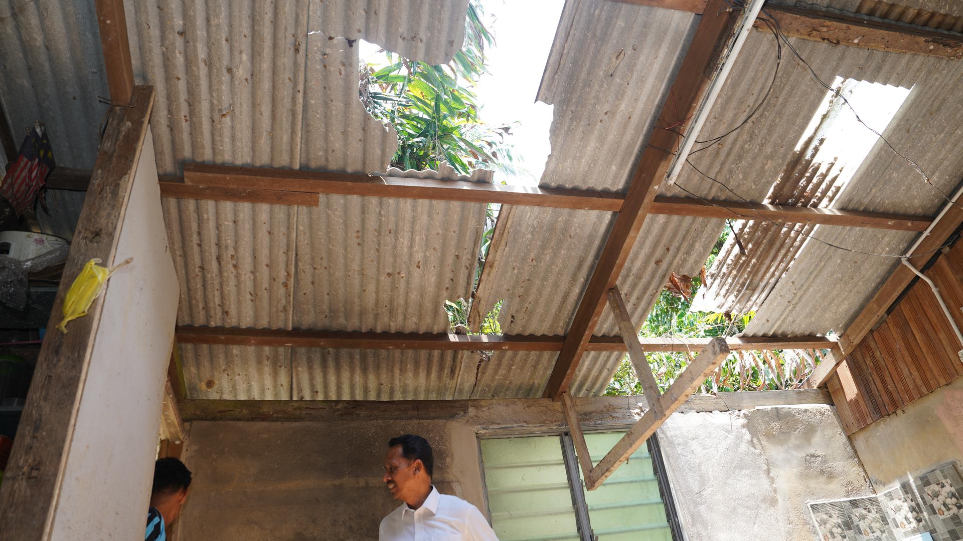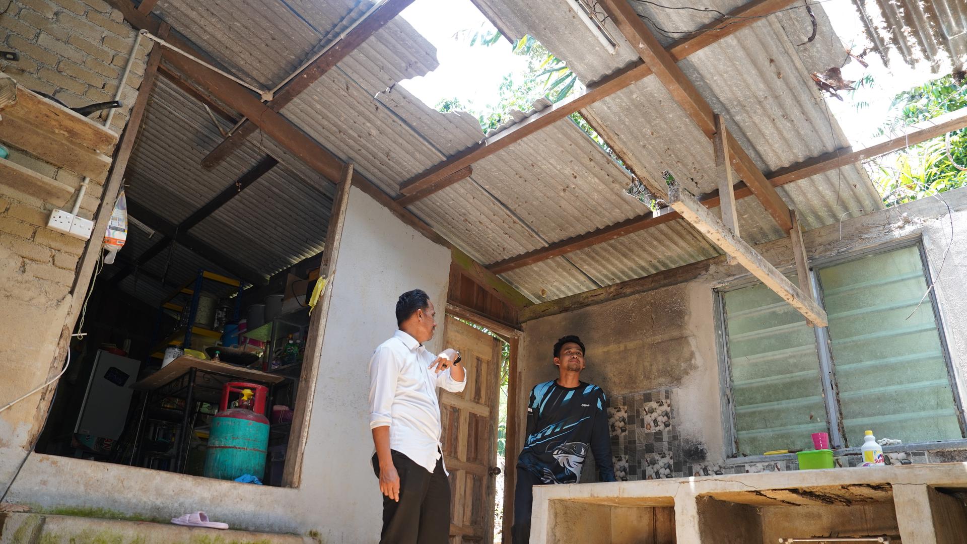 YBrs. Encik Jafre bin Taib, Pengurus Pembangunan Masyarakat dan Sosial, mewakili pihak pengurusan KETENGAH, telah hadir menyampaikan sumbangan kepada penerima, Encik Muhammad Al Amin bin Khalid. Bantuan tersebut bertujuan meringankan beban serta membantu proses pembaikan kerosakan yang dialami.